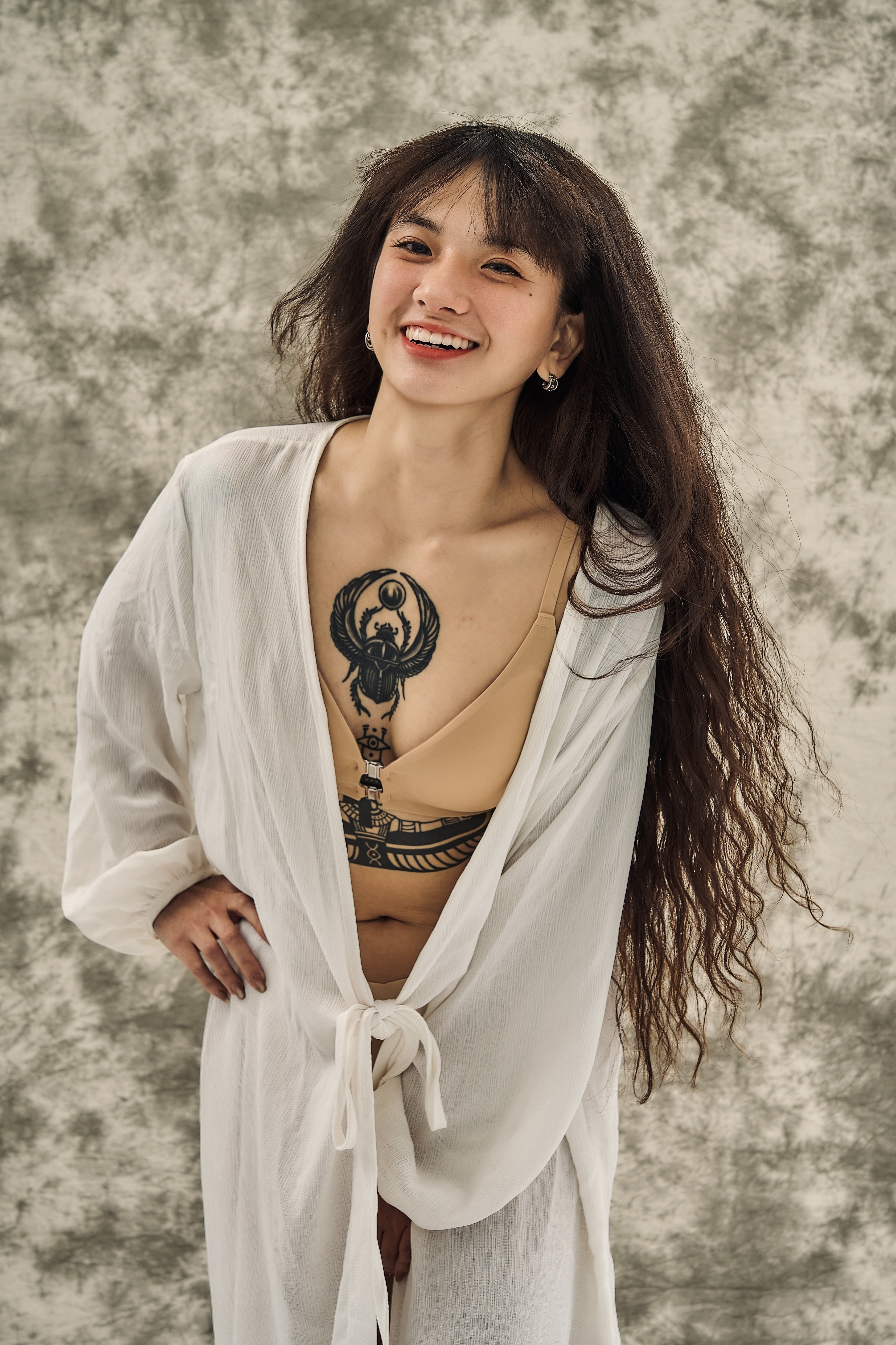 | 模特 | 身高 | 體重 | 胸杯 | 上胸圍 (cm) | 下胸圍 (cm) | 腰圍 (cm) | 臀圍 (cm) | 著用尺寸 |